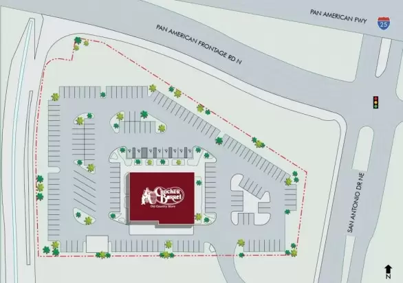 Cracker Barrel is strategically located along San Antonio Drive NE in Albuquerque, New Mexico, with access to a combined daily traffic count of approximately 175,258 vehicles from San Antonio Drive NE (21,013 VPD), Pan American Frontage Road North (27,369 VPD), and Interstate 25 / CanAm Highway (126,876 VPD). The site is surrounded by major national retailers including Target, Walmart...