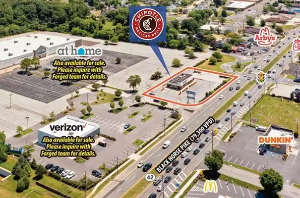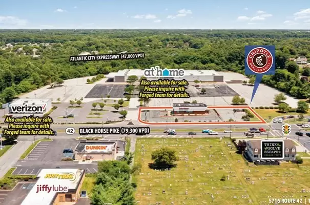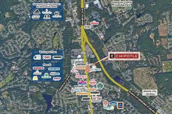 Chipotle – Turnersville is strategically located along Route 42 (Black Horse Pike) in Turnersville, New Jersey, with access to a daily traffic count of approximately 79,300 vehicles. The site is surrounded by major national retailers including Target, Walmart Supercenter, Lowe’s, Aldi, CVS Pharmacy, Kohl’s, Starbucks, Chick-fil-A, Popeyes, McDonald’s, and Dunkin’, driving consistent consumer...