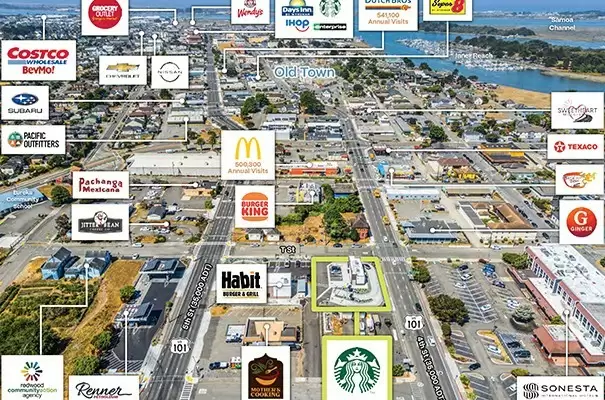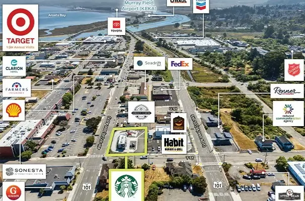 Starbucks – Eureka is strategically located along 4th Street / U.S. Highway 101 in Eureka, California, with access to a daily traffic count of approximately 35,000 vehicles. The site is surrounded by major national retailers including Costco, Target, Safeway, etc., driving consistent consumer traffic to the area. The property is located near several schools, residential communities, and new developments such as Eureka High School, downtown neighborhoods, and growth along the Highway 101 corridor. The five-mile trade area is home to 82,759 residents with an average household income of $93,415. Located approximately 270 miles from San Francisco, the site also offers convenient access to surrounding regional destinations such as Arcata(6.9 miles northeast) and Fortuna(18.3 miles south).