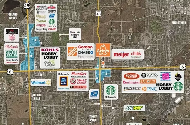 Arby’s Restaurant is strategically located along Harlem Avenue in Orland Park, Illinois, with access to a daily traffic count of approximately 43,000 vehicles. The site is surrounded by major national retailers including Meijer, Home Depot, Hobby Lobby, Menards, Chili’s, Panda Express, White Castle, and AutoZone, driving consistent consumer traffic to the area. The property is located near several schools, residential communities, and new developments such as the remodeled Meijer-anchored shopping center and surrounding retail pads. The five-mile trade area is home to 188,118 residents with an average household income of $117,688. Located approximately 25 miles from downtown Chicago, the site also offers convenient access to surrounding regional destinations such as Tinley Park(2.2 miles south) and Orland Hills(3.7 miles southwest).
