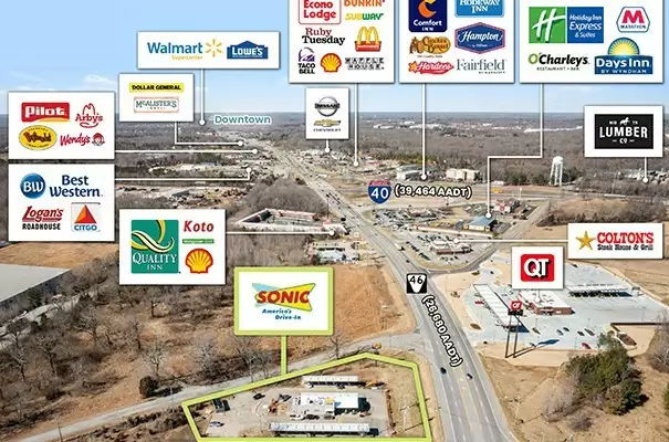 Sonic is strategically located along Highway 46 South in Dickson, Tennessee, with access to a daily traffic count of approximately 26,680 vehicles, and additional exposure to 39,464 vehicles on nearby Interstate 40. The site is surrounded by major national retailers including Walmart Supercenter, Kroger, Lowe’s, etc., driving consistent consumer traffic to the area. The property is located near several schools, residential communities, and new developments such as Dickson County Plaza Shopping Center, TriStar Horizon Medical Center, and multiple growing neighborhoods along Highway 46. The five-mile trade area is home to 18,239 residents with an average household income of $88,886. Located approximately 40 miles from Nashville, the site also offers convenient access to surrounding regional destinations such as Clarksville(38.6 miles north) and Franklin(32.3 miles east).