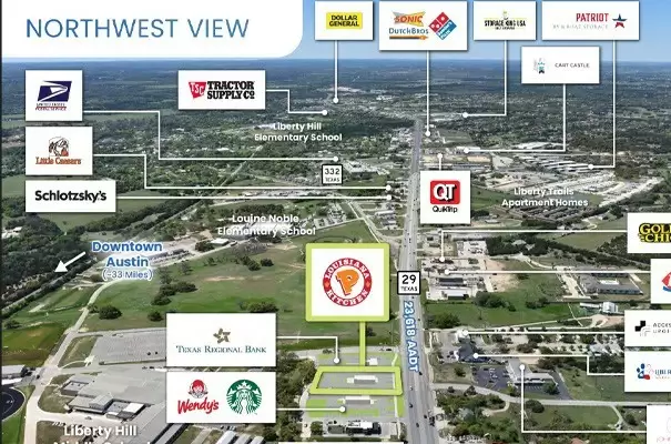 Popeyes – Liberty Hill is strategically located along TX-29 in Liberty Hill, Texas, with access to a daily traffic count of approximately 23,618 vehicles. The site is surrounded by major national retailers including HEB, McDonald’s, Starbucks, Whataburger, CVS, Walgreens, and a Home Depot under construction, driving consistent consumer traffic to the area. The property is located near several...